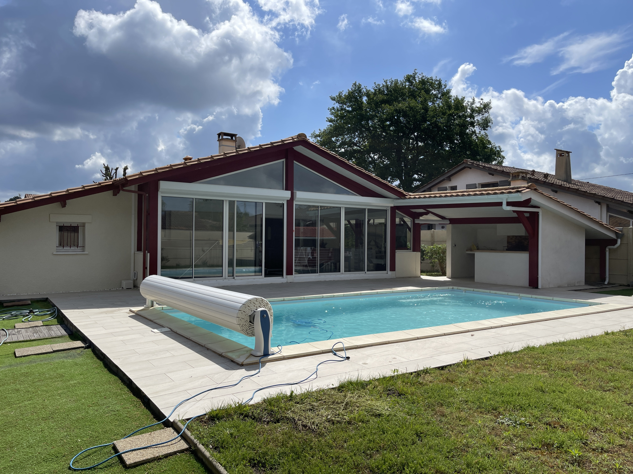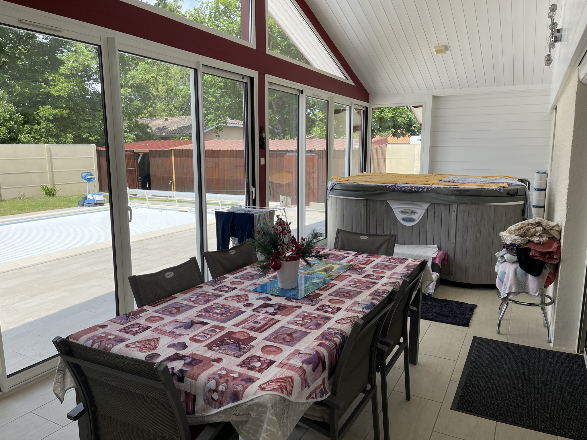 Audenge, au calme, proche de toutes commodités (écoles, collège, commerces) maison 3 chambres avec une pièce de vie de 30m2, cheminée insert, cuisine équipée ouverte de 12m2, le séjour ouvrant par une grande baie vitrée sur une véranda de 30m2 avec un spa 6 places. Les baies de la véranda sont équipées de volets roulants. Chauffage par radiateurs à inertie. A l'extérieur une terrasse vous accueille avec une cuisine d'été et son barbecue, une piscine de 8x4 avec volet de sécurité électrique, des panneaux solaires pour de l'auto-consommation sont en service, un chalet de 10m2 et diverses dépendances pour rangement. Jardin entièrement clos de 718m2 avec portail et portillon. . Les informations sur les risques auxquels ce bien est exposé sont disponibles sur Géorisques : www.georisques.gouv.fr