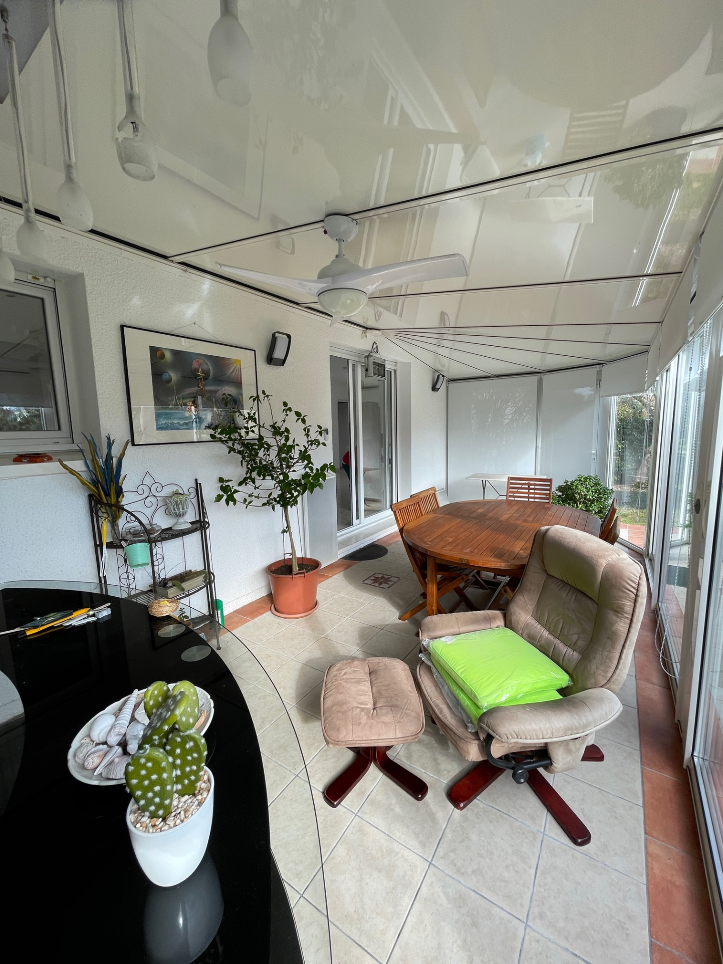 vous recherchez le calme et la proximité des commodités. Venez découvrir cette maison de 120m2 avec son joli jardin arboré de 650m2. Deux chambres, possibilité de créer la troisième. Grande cuisine de 13m2, grand cellier double, séjour 47m2 et véranda de 20m2 ! Clim réversible, parking véhicules.