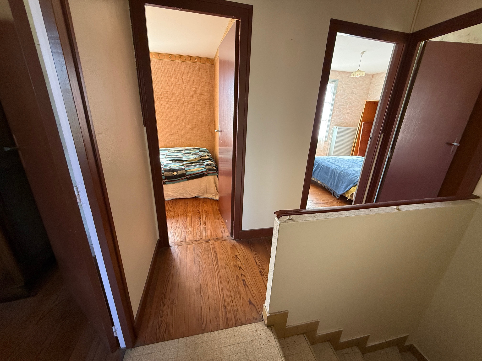 A Mios, au bourg et au calme, proche écoles et collège, maison à étage 4/5 chambres à rénover, jardin privatif d'environ 535m2.